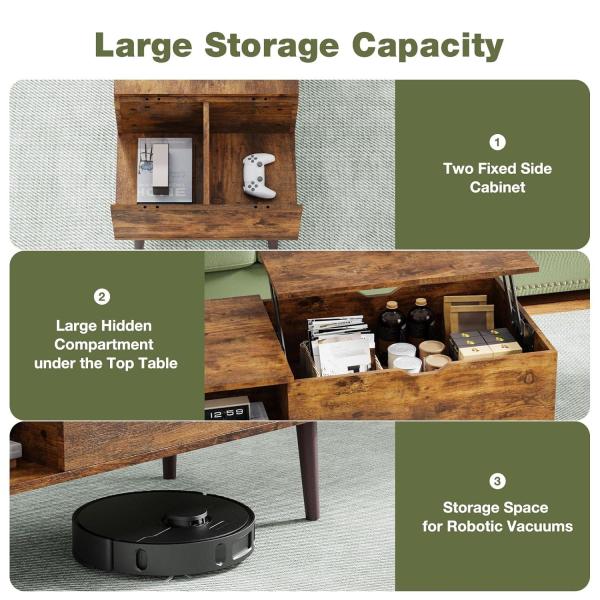 • Practical Lift Top Design: An nice work-from-home solution. This living room table is equipped with a lifting tabletop that can be pulled out (elevated to 6.3”, bear up to 11 lbs) effortlessly when you need a quick workspace in the living room. You don't have to lean forward to access your laptop on the table. It's also the perfect dining room table to eat off, do homework, anything as your living room essentials! Stability will also be guaranteed while adjusting.